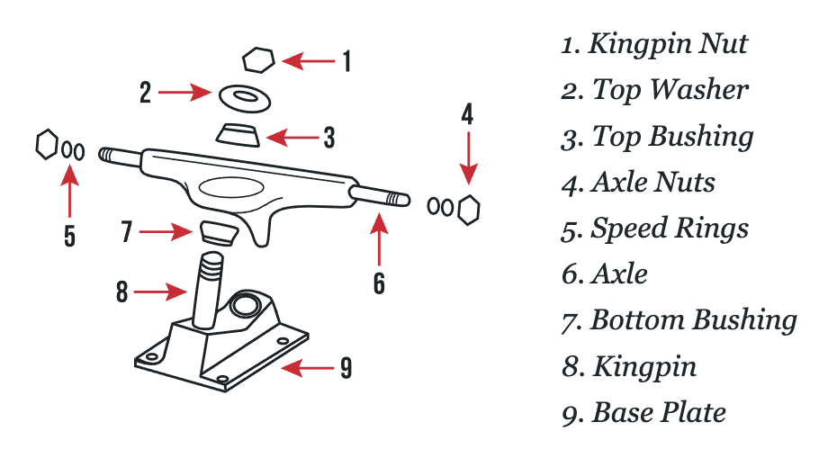 Parts of skateboard trucks. Source: SkateDeluxe